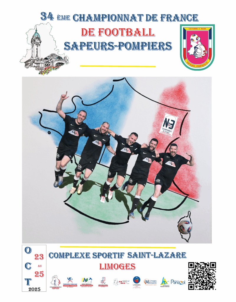 Les sapeurs-pompiers de la Haute-Vienne organisent le 34ème Championnat de France de Football Sapeurs-Pompiers (N3) qui va se dérouler à Limoges au complexe sportif Saint Lazare du 23 au 25 octobre 2025.